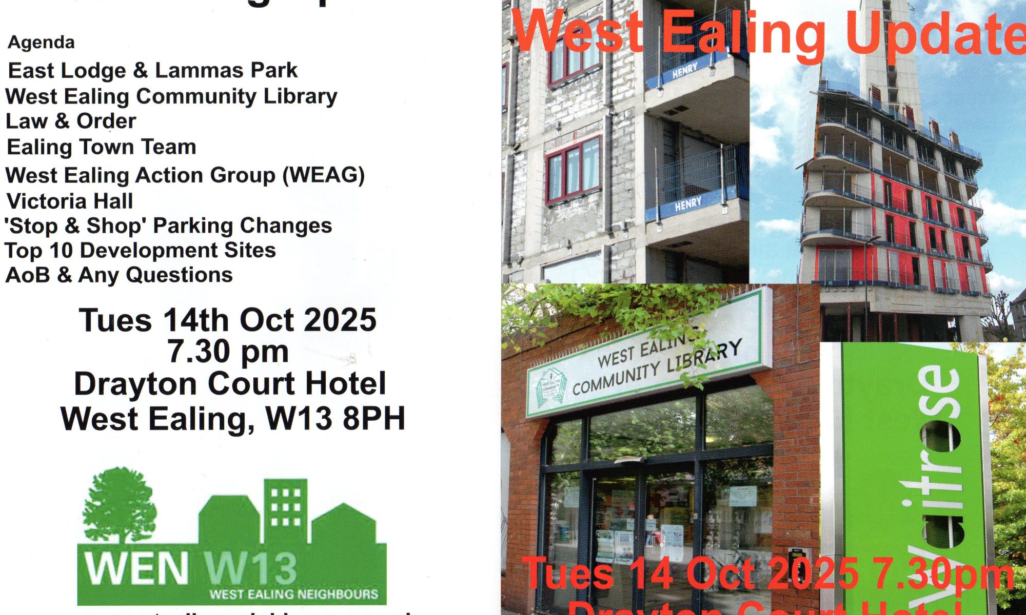Resident-led questions/presentations scheduled to be delivered include those by Creffield Area Residents Association, Ealing Friends of the Earth, Ealing Matters, Old Oak Neighbourhood, Save Ealing Parks and Sue New.